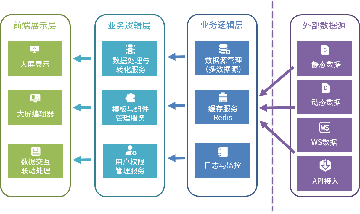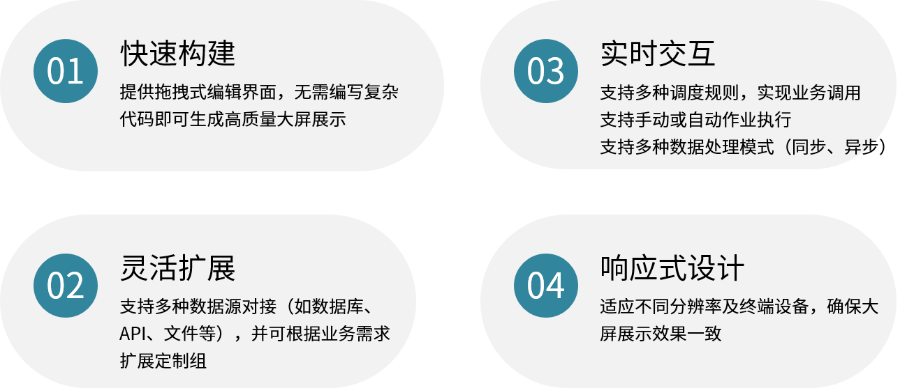 三、大屏可视化工具大屏快速可视化工具是一款面向企业级用户和数据分析师设计的可视化展示平台,旨在通过简洁直观的界面、丰富的数据组件和灵活的配置方式,实现数据的快速呈现和交互式分析。产品支持多种数据源接入,并能够生成适用于监控大屏、业务数据大屏、运营报表等场景的实时数据可视化展示。